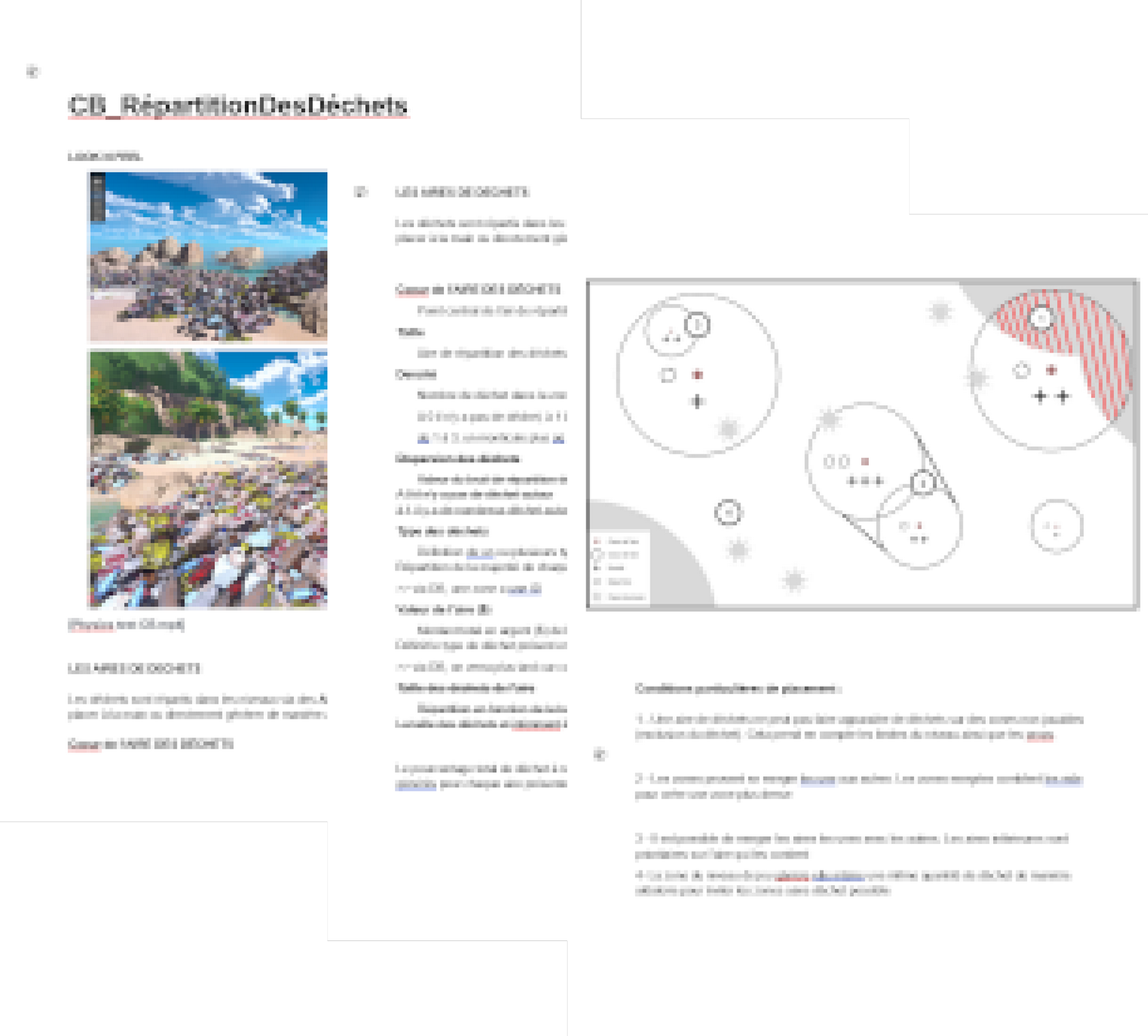 Ma Solution : J'ai designé un outil permettant de "peindre" des zones de placement. L'outil peuplait ensuite la zone de manière procédurale en suivant des règles de densité, de type d'objet et d'orientation, tout en laissant la possibilité aux artistes de retoucher le résultat.